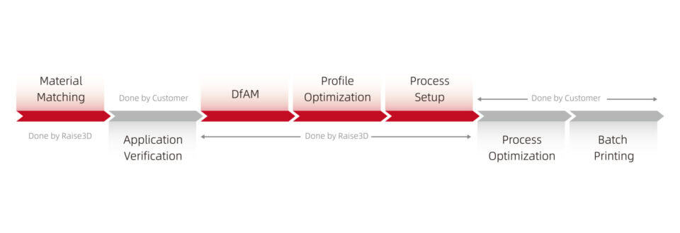 Pokud jde o tiskárny, společnost Raise3D se svými dlouholetými zkušenostmi v oblasti 3D tisku poskytla společnosti CATL řadu modelů využívajících procesy FFF, DLP, SLS a další, s celkem stovkami nasazených zařízení. Zařízení Raise3D bylo vždy známé svou vysokou přesností a stabilitou. Zároveň díky bohatým patentovaným materiálům Raise3D a materiálům OMP (Open Material Program) plně splňuje požadavky společnosti CATL na různé výrobní scénáře.